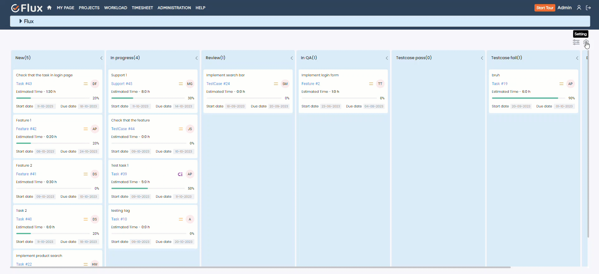 - Click on the settings icon located on the top-right corner of Agile board interface. This allows you to configure the settings of the Agile board.