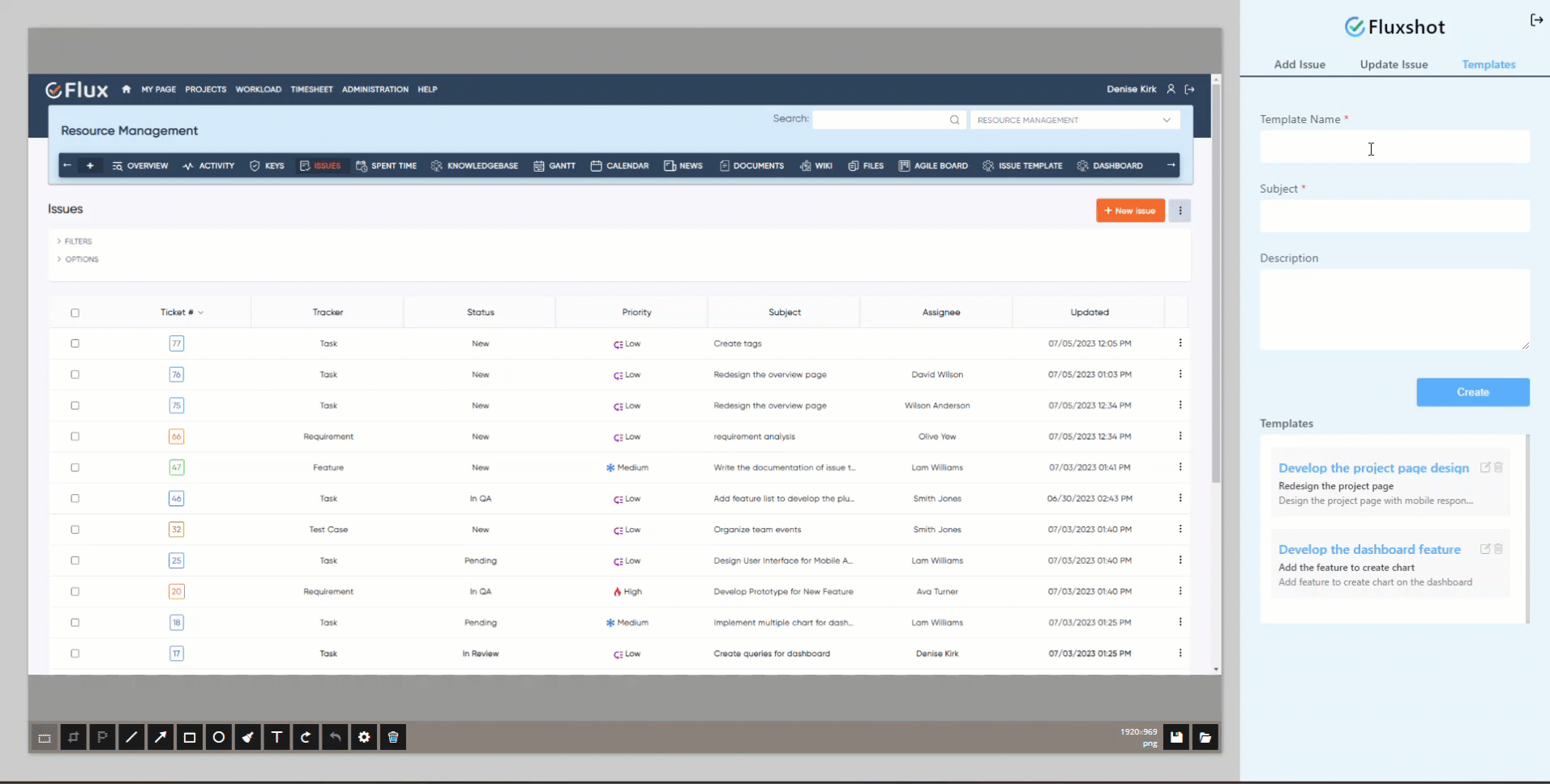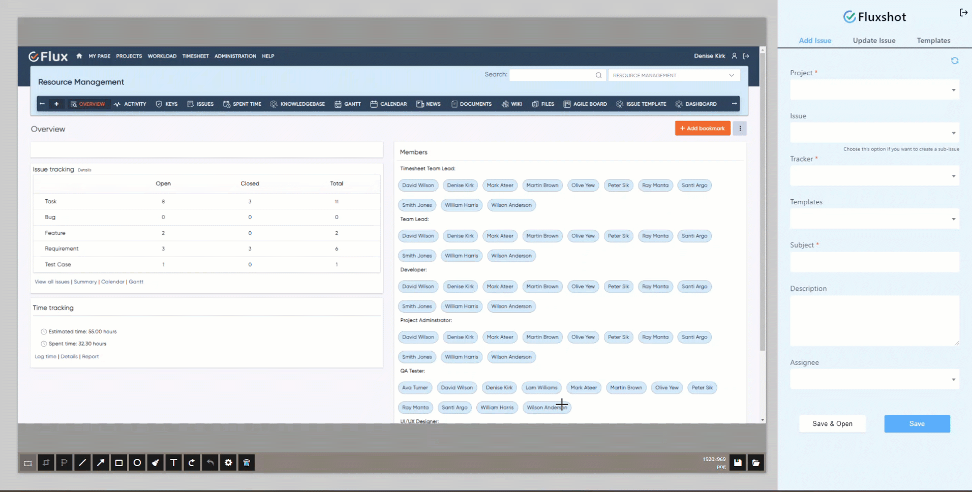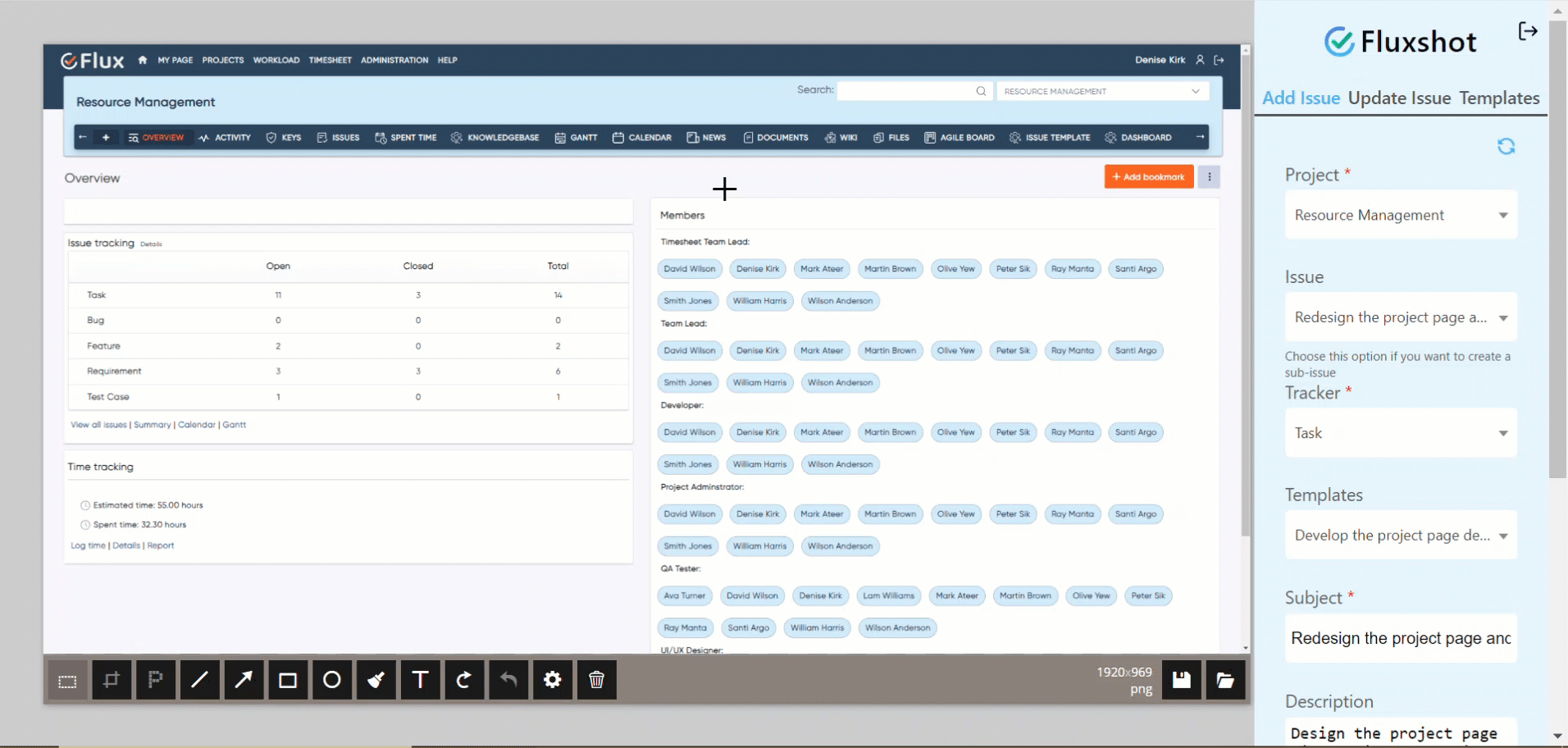 Redmineflux Fluxshot is a versatile Chrome extension that simplifies the process of capturing screenshots, annotating them, and creating tasks or issues based on the captured images. It provides a user-friendly interface with powerful annotation tools, allowing users to add text, shapes, arrows, and highlights to screenshots for enhanced communication and clarity.