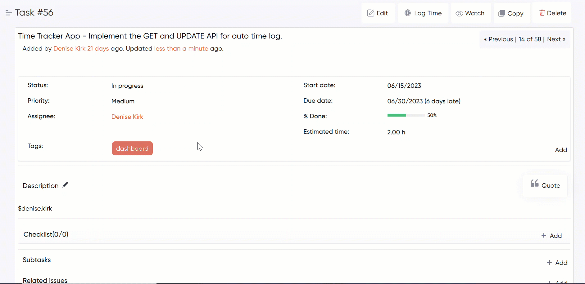 - Inline editing of issue fields such as subject, description, status, priority, and more.