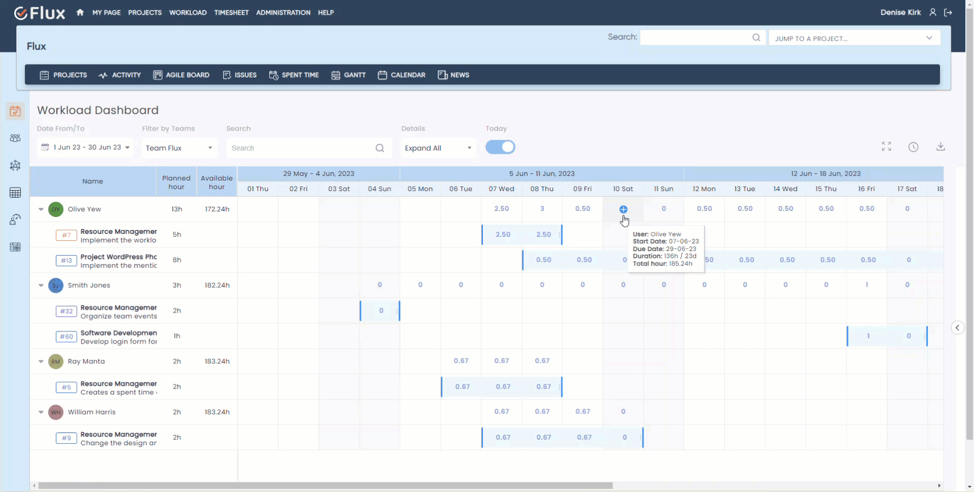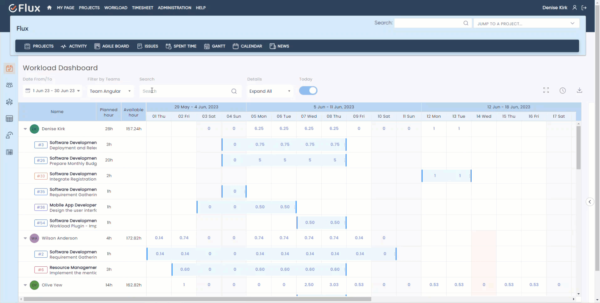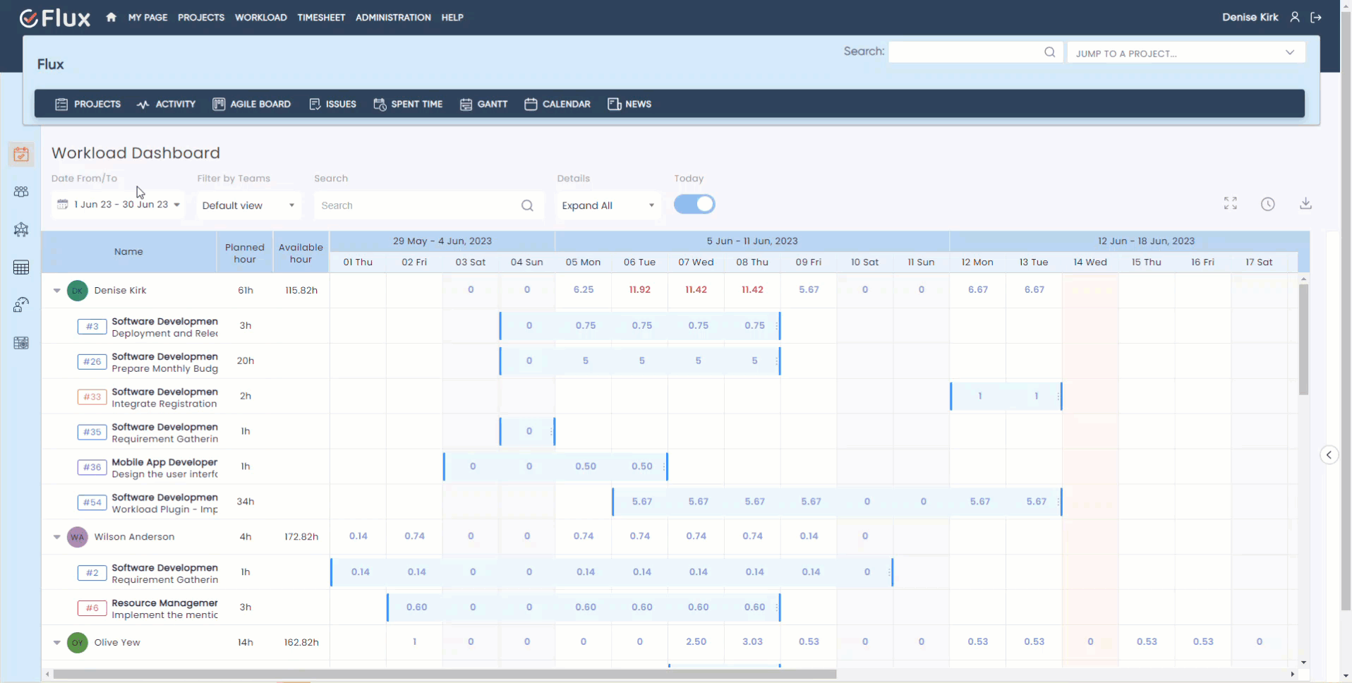 The Redmineflux Workload plugin is a powerful tool that helps you manage your team’s resources and capacity. It allows you to track estimated time on tasks, create resource schedules and visualize workload. The plugin visualizes workload by showing you how much time each resource has available. This helps you to identify potential bottlenecks and ensure that your team is not overloaded.
